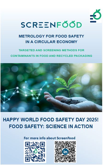 The aims of 23IND13 ScreenFood Project go in line with these important food safety targets, helping to develop analytical strategies and reference materials supporting food and food packaging industries in the provision of safe and sustainable products compliant to legislation. The project works closely with a metrological network able to provide, in collaboration with research centres and industries, innovative harmonised standards aimed at the detection and quantification of contaminants in food, with a focus on those possibly migrated from virgin and recycled food packaging materials.